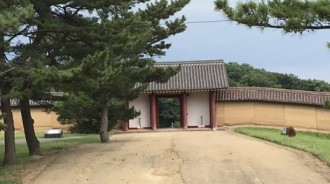 大和朝廷は多賀城に鎮守府を置き、蝦夷地経営の拠点としていた。その中で733年出羽柵をこの地に置き、前線基地とした。761年には秋田城と改称され、出羽国府を兼ねることになった。発掘調査により、1.1×1.3kmの外郭であった事が判明している。 歴史資料館近くの駐車場に車を停め、まずはスタンプを押しがてら、歴史資料館を拝見する。古代の城は成り立ちや役割が中世以降の城とは異なるため、資料での解説は非常に助かる。城というと軍事的な意味合いを先に思い浮かべるが、ここは行政機関としての役割の方が強いことが良く分かる。知識を頭に入れたうえで、橋を渡って政庁へ。塀の一部と門があり、それを超えると広い道。やはりこれは一般的な城ではない。平城京や平安京に近く、政庁が御所で、朱雀門と羅生門を結ぶ朱雀大路が東大路ということだろう。出羽国における首都ということか。しかし東門の外側にある水洗トイレは驚いた。奈良時代に水洗トイレがあったとは。当時、中国の東北部にあった渤海国との交易をしていたと言われており、渤海の商人に使ってもらっていたのだろうか。資料館には、水洗トイレで使っていたと思われる木の棒が展示されている。これでお尻を・・・?いろんな意味で想像を掻き立てられるというか。 総括すると、お城ファンの気持ちを高揚させる城ではないものの、日本史好きの人間の興味をそそるには十分と言える城だった。多賀城ほど広範囲ではなく、コンパクトに見ることができるのも良い点と言える。観光客はほぼ皆無だったが、資料館の受付にいた3人の女性、一日暇だろうなぁ・・・(R4.8.8) |