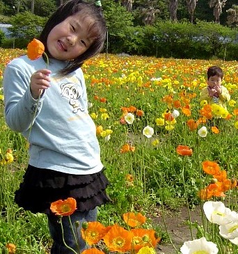 今日はお花摘みに行ったよ。ポピーをいっぱい摘んだよ。(2006.4.30)