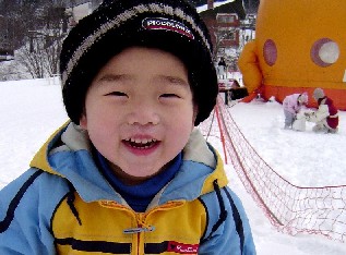 初日はゲレンデ下にあった子供用広場でそりや雪合戦をしたり、雪だるまを作ったりしました。子供達にとって、一面の雪景色が初めてで、まずそれに感動していました。かなりのはしゃぎようで、親まで楽しくなりました。