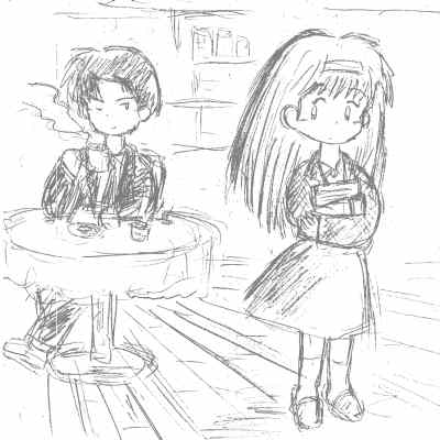 少し前に描いたものですが、草の根BBSのZOB Station BBS(現在はtelnet等でインターネットアクセス可)のボードで連載されている探偵小説(by 桐沢有希さん)の、主人公の探偵とその助手を挿し絵風に?描いてみたものです。